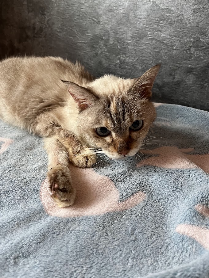 勇敢無畏的16歲「兔寶」。 2026.3.3 16歲的兔寶在去年12月檢查出肝臟腫瘤,因為腫瘤越來越大,壓迫到腹腔器官,爸爸決定等她身體無法負荷的時候選擇送她離開。因為家裡同時也有狀況,無法長時間陪伴兔寶,爸爸決定送她來貓森旅度過她生命的最後幾天